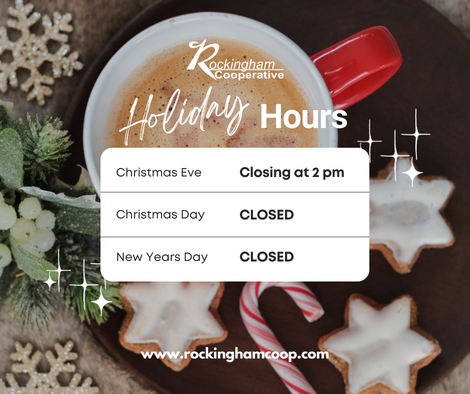 The holidays are almost here, and we’re getting excited to celebrate the season with our customers, our teams, and our communities. To help everyone plan ahead, here’s a quick heads-up on our holiday hours for all Rockingham Cooperative locations.