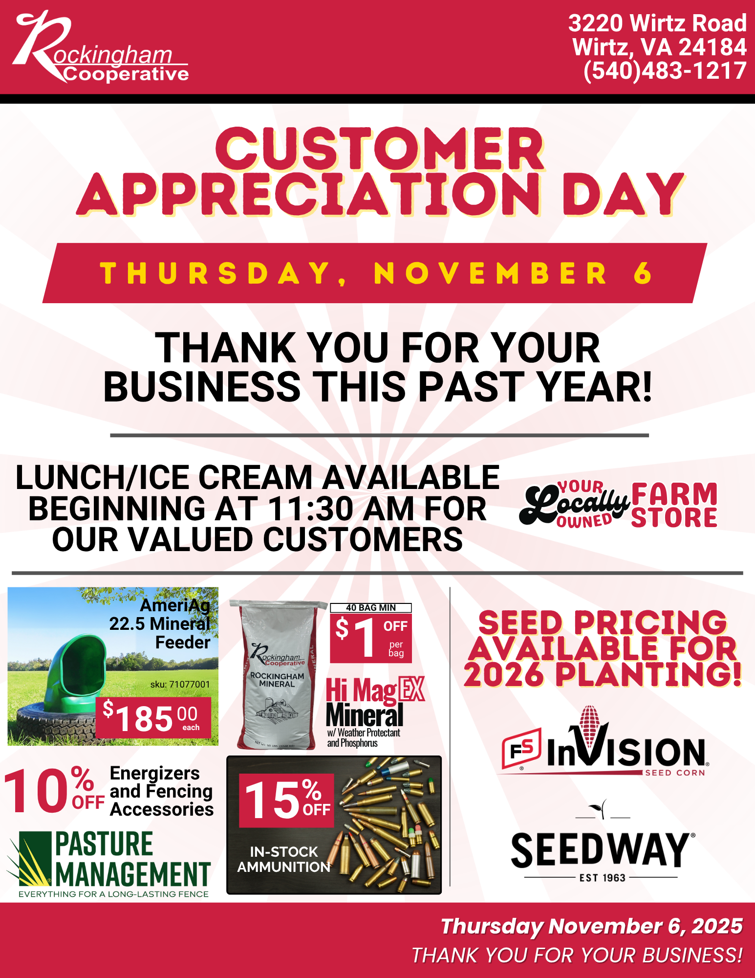 Join us for Customer Appreciation Day at Rockingham Cooperative - Franklin County as we celebrate YOU β our valued customers!