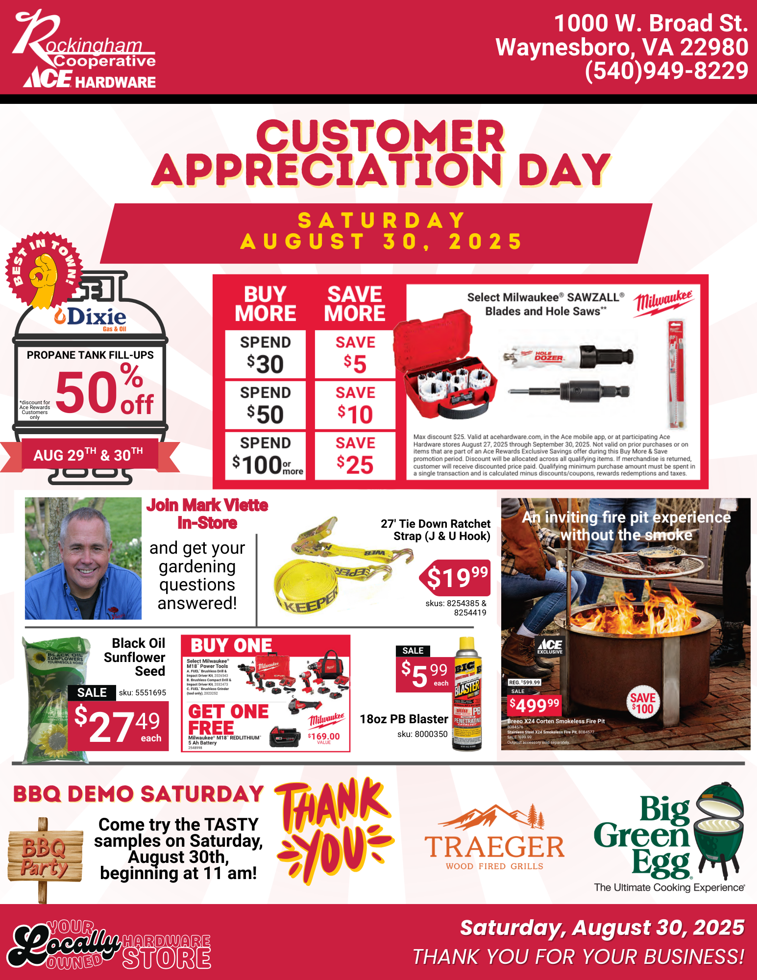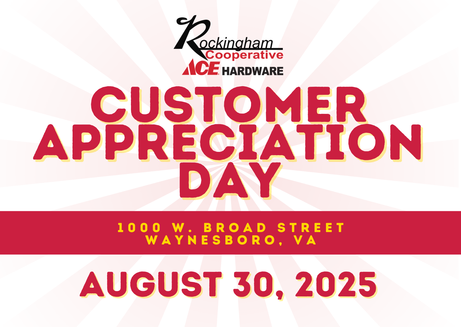 Join us at Rockingham Cooperative Ace Hardware in Waynesboro on Saturday, August 30th for Customer Appreciation Day, featuring: